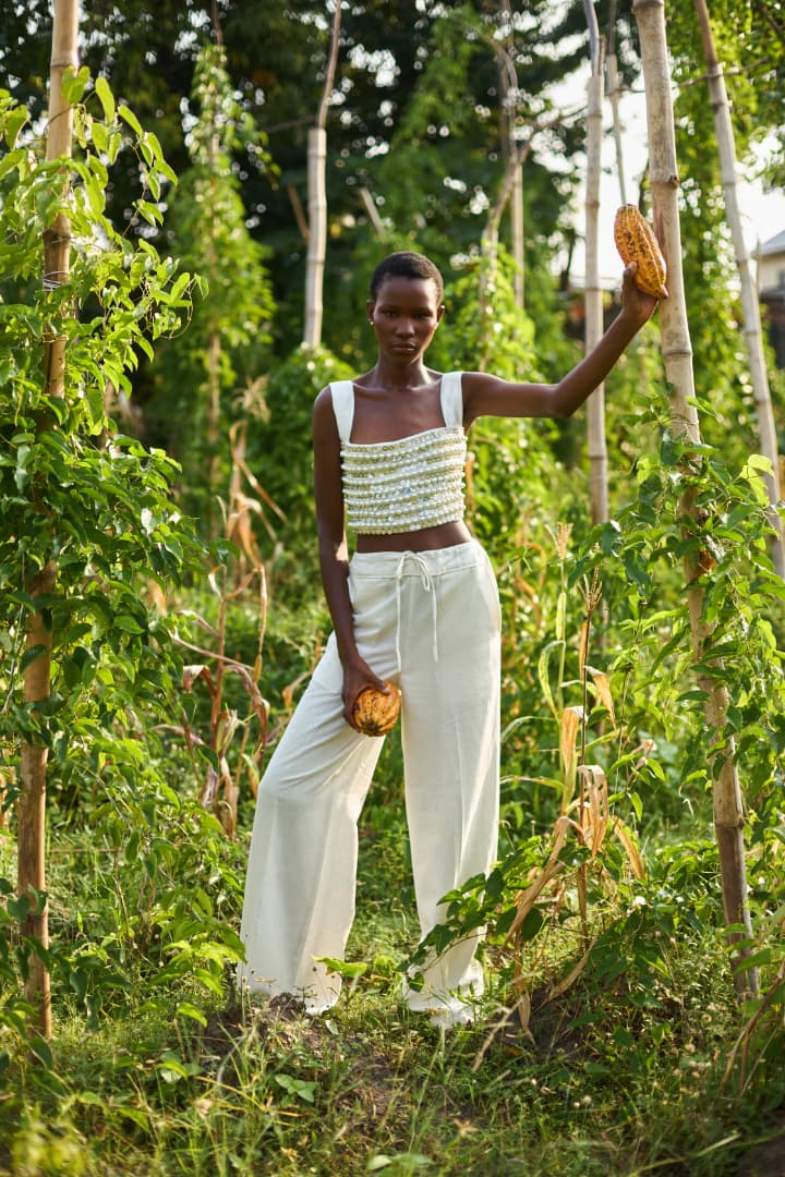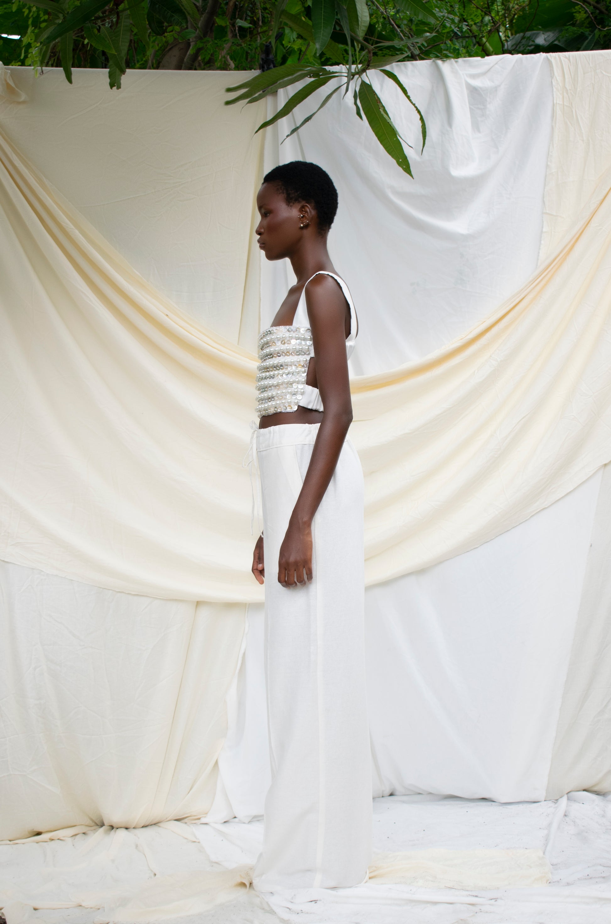 Pearl, crystal and shell hand-beaded panel with strap detail and elasticated back with hook and eye opening.